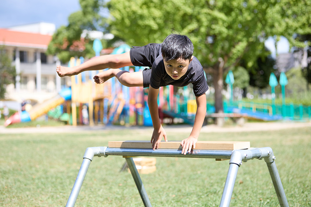 跳び箱やトランポリンなどで思いっきり遊べる冒険遊び場!
